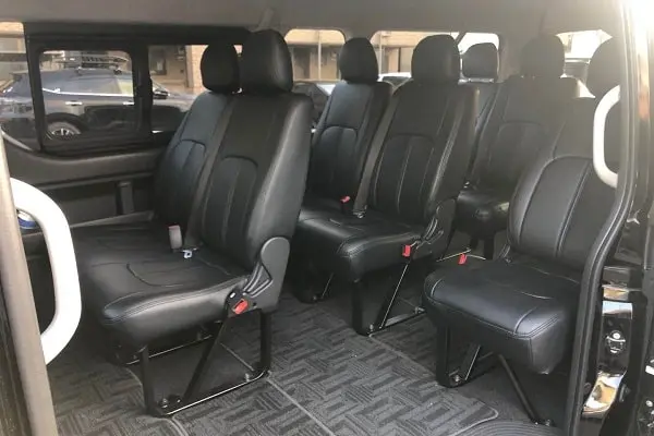 The Toyota Hiace provides versatility and comfort for up to 9 passengers, or 6 passengers with luggage.